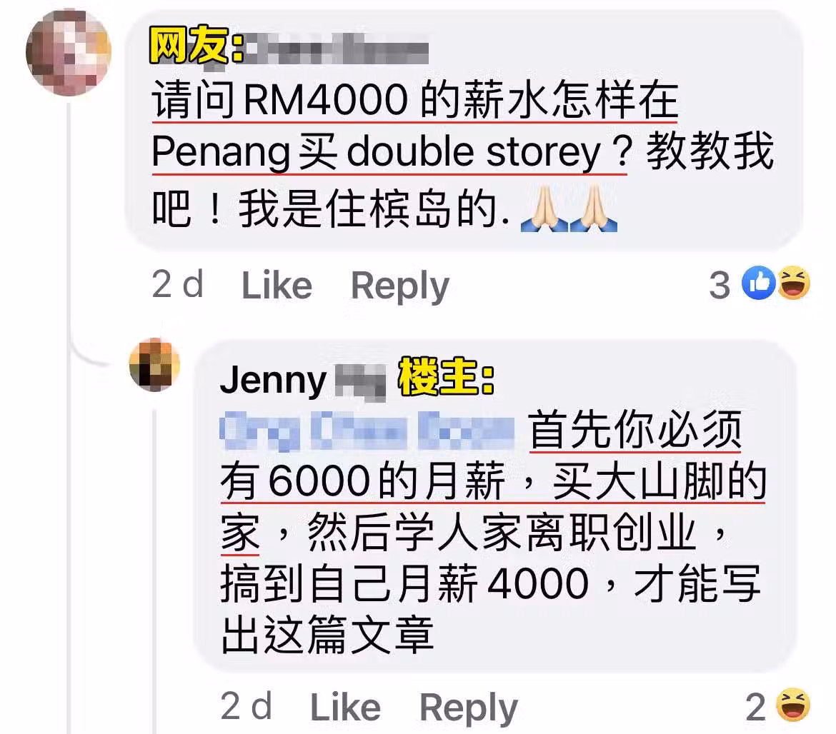 吉隆坡RM4000就夠,檳城網友卻抱怨沒有月入RM7000,活的像個乞丐,網友:是你自己作的吧