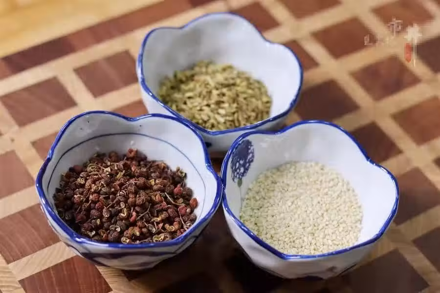 1、首先先把花椒去除小樹枝和花椒籽,然後我們在放在一個乾淨的鍋中,一定要是沒有水沒有油的,中小火煸炒大約3分鐘,直至花椒有散發香味半幹時備用。