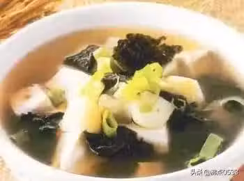 2、待肉湯或水煲開,倒入紫菜、豆腐、肉片,再開時,加些生抽、醋、鹽、麻油及蔥粒即成。