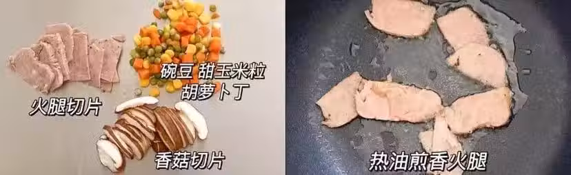 3、加入豌豆粒、胡蘿蔔丁,玉米粒翻炒均勻