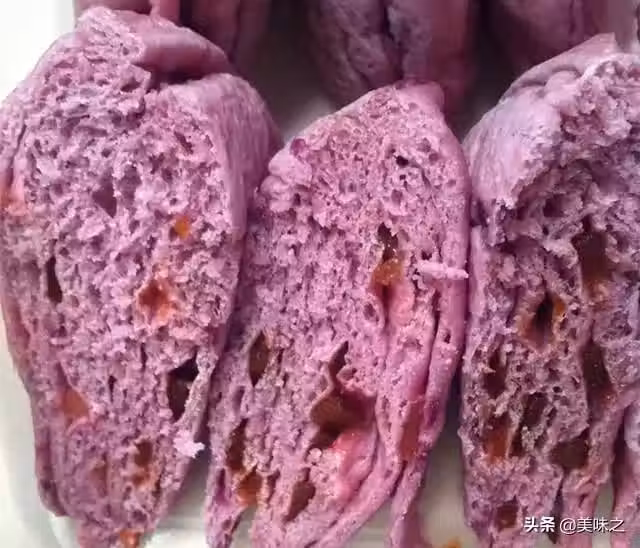 中筋麵粉250克、紫薯100克、水150克、果脯30克、酵母3克、鹽3克、糖10克。