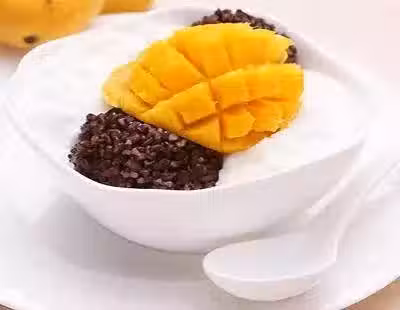 準備材料:紫米60g、水4杯、椰汁1杯、栗粉120g、清水1/2杯、砂糖120g、魚膠粉適量、水果適量(根據個人喜好準備即可)。