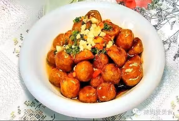【原料】:小芋頭若幹、雞腿一隻、白糖適量、蔥花少許、芝麻少許。