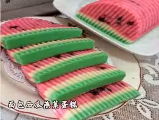 8.其餘的燕菜麵糊加入少許青色素(西瓜皮),倒在白色層上面。 待涼,即可放入冰箱。