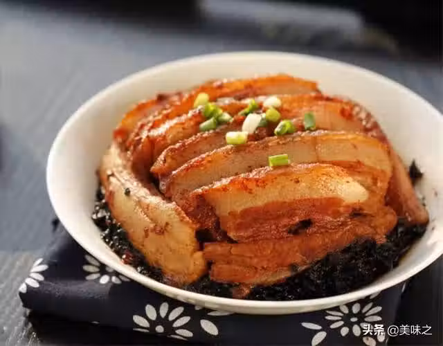 15、最後再表面上撒些小蔥末, 這樣色香味誘人的大年菜「梅菜扣肉」就完成了。