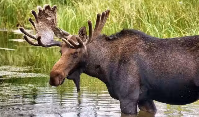 野狼被駝鹿引入水中,完全不知自己被算計,下一秒後悔都晚了
