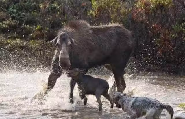 野狼被駝鹿引入水中,完全不知自己被算計,下一秒後悔都晚了