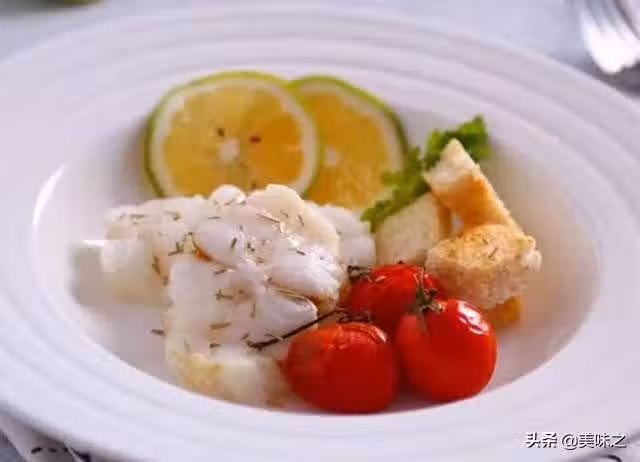 1、鱈魚去皮備用,處理好的鱈魚放在盤中加少許鹽、檸檬汁和橄欖油腌制20分鐘。