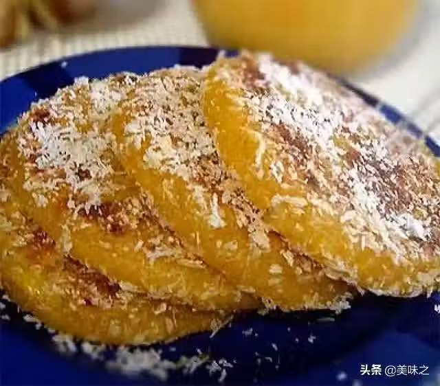 6、焦至兩面金黃,出鍋撒上椰絲即可。