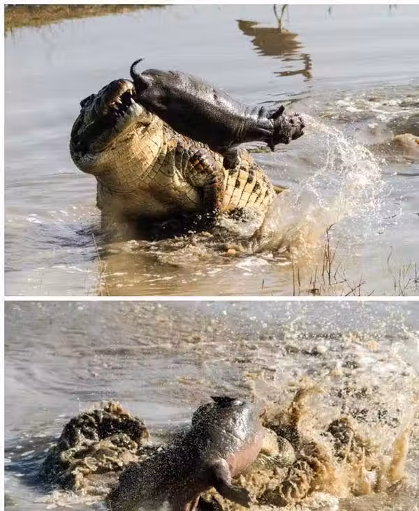 帥不過三秒!鱷魚偷襲小河馬霸氣狂甩,暴怒母河馬下秒趕到「泰山壓頂」,一分鐘送鱷魚上西天