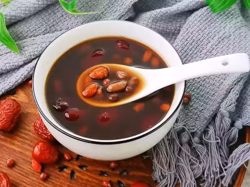 功效:補氣養血 材 料:紅豆50克、紅棗5顆紅皮花生50克、紅糖2塊、枸杞10幾顆 做 法: 1. 冬燉鍋中加入紅豆、紅皮花生、去核紅棗。 2. 加入兩碗清水。 3. 大火燒開,再改中火燉40分鐘。 4. 再放入紅糖、枸杞,繼續燉煮五分鐘即可。