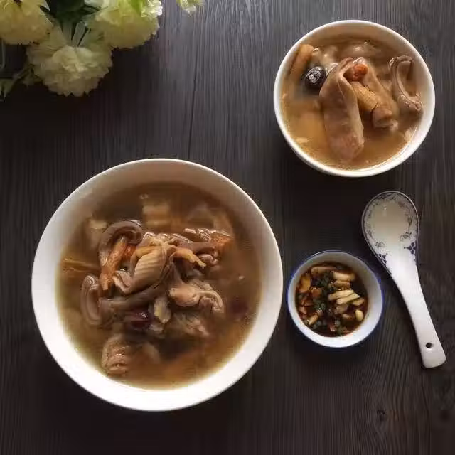 豬肚一隻;雞一隻或半隻;黨參50克;枸杞15克;雞心棗30克;胡椒5到10克;鹽適量;水適量