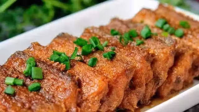 3、放入炸好的帶魚塊兒,不要翻動。此時放入白糖、老抽、醬油、醋(可以多放些)、鹽。倒入開水,水面摸過帶魚即可,蓋上鍋蓋中火燉煮20分鐘。20分鐘後掀開鍋蓋,大火收汁,即可出鍋!