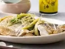 桂魚(一條)400克,蔥10克,姜(切片)8克,大蔥(切絲)10克,黃酒1湯匙,油2湯匙,柚子醬油3湯匙