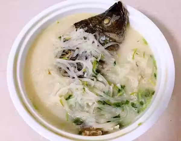 用料:鯽魚、白蘿蔔、薑絲、蔥綠、鹽、料酒、雞精、開水