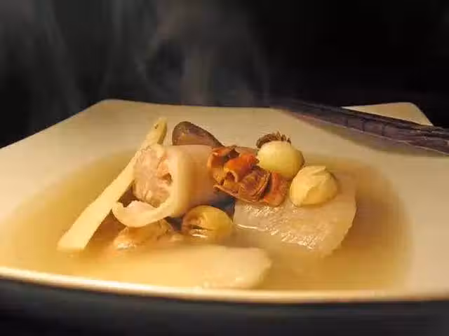 6.大火滾開轉小火煲兩小時,喝之前加少許鹽調味。具有補陰益髓的效果,可改善腰酸背痛,預防骨質疏鬆