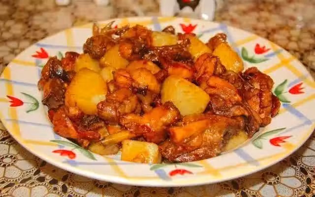 用料:新鮮雞半隻、土豆兩個(小個)薑片適量(或薑絲)八角兩個(可以不放)啤酒一聽、醬油適量、老抽少許、鹽適量