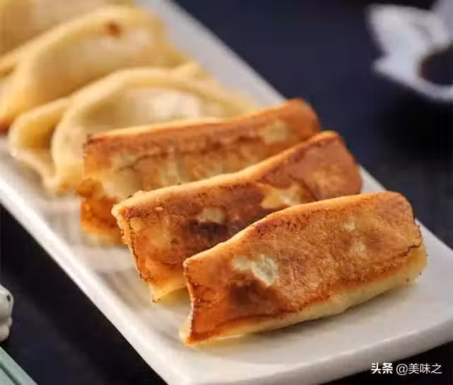 11、水快乾時,轉為小火, 慢慢的將鍋貼煎至金黃色,出鍋裝盤。