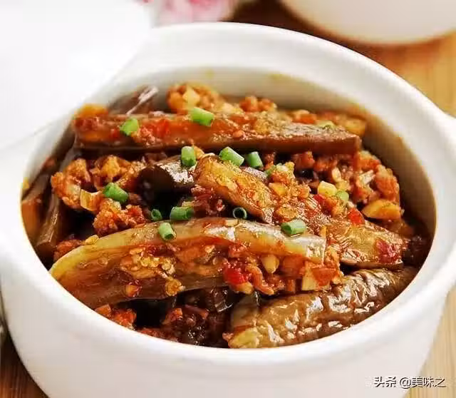 8、把肉末魚香汁燒開後倒入焯好水的茄子中,蓋上蓋,燜煮十五分鐘,撒上蔥花即可。