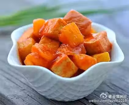 食材:老豆腐1塊,菠蘿半個,番茄沙司5湯匙(約75g),水澱粉2湯匙,姜、鹽1/4茶匙,糖1茶匙
