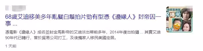 艾迪年輕的時候,曾憑借著電影《邊緣人》一舉拿下影帝的殊榮。最近,有網友在社交網上曬出艾迪於《邊緣人》中的劇照,並留言詢問大家是否記得他?