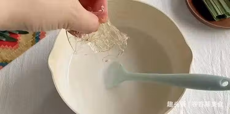 第九步:在斑斕葉盒子裡放入煮好的西米打底。