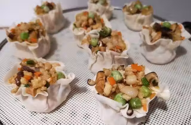 9、這樣香噴噴的燒麥就完成了,比外面的大個,還更有營養,強烈推薦你們試試。