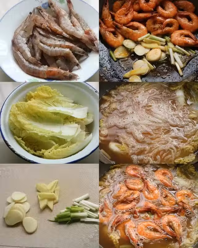 6、再把蝦放進去,大火煮5-8分鐘左右,然後稍微把湯汁收干即可;把娃娃菜擺放在砂鍋裡面,再把粉絲放進去,最後把蝦鋪在上面,撒點蔥花即可。這樣我們的粉絲蝦煲就做好了,鮮香下飯,湯汁多,而且特別的鮮美好吃!