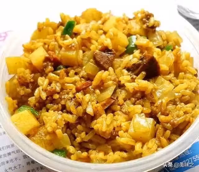 大米80克、熟牛肉200克、土豆70克、青椒適量、蒜適量、洋蔥適量、食油2茶匙、咖喱粉25克、鹽適量。