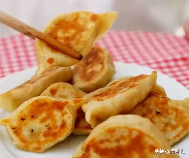 10、當聽到響聲時,倒入清水,沒過餃子底部一些,蓋上鍋蓋,中火煎煮約7分鐘就可以了。