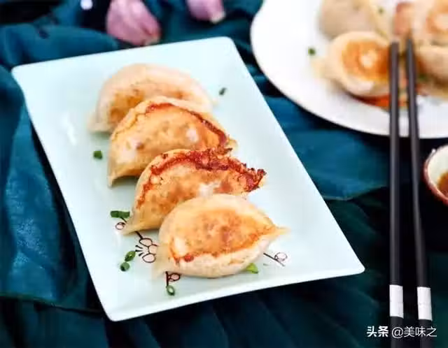 11、鍋里稍微倒點油,燒熱,然後將餃子碼入,倒點水漫過餃子底面,蓋上蓋子,用中火煎, 8分鐘左右水就收乾了,底子也就焦黃香脆了,起鍋享用。