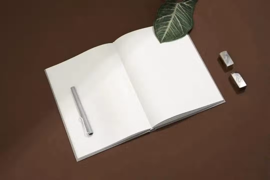 筆記本尺寸較大,放在家中的梳妝台或者書桌上,一個人靜靜地回憶、思考、落筆。 還有一條同色系軟書簽帶和紅色書簽,方便在寫寫畫畫時隨時注記。