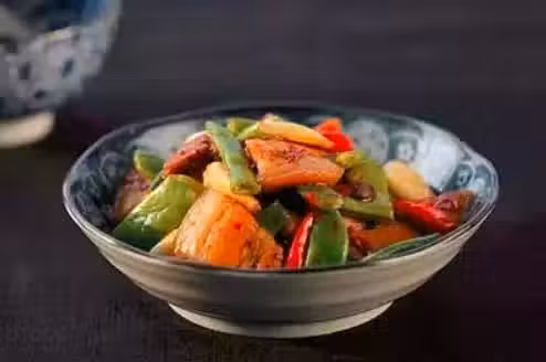 五花肉300克、四季豆300克、大蒜適量、薑片適量、郫縣豆瓣醬適量、花椒適量、料酒適量、紅辣椒適量、糖適量、油鹽適量。