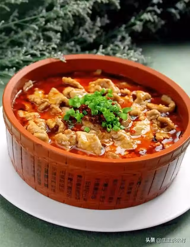 3、油鍋中放入豆瓣醬、花椒、蔥絲、蒜片、薑片煸香、加肉湯、醬油、精鹽、味精、白糖,胡椒粉燒沸放牛肉,弄好後放入青菜;