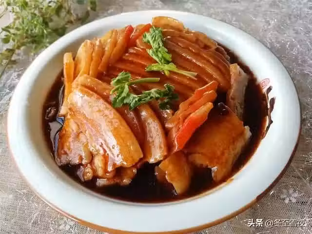 【扣肉】所需材料:五花肉500克、油鹽適量、蔥1段、姜2片、大蒜2瓣、料酒1湯匙、白糖1茶匙、紅燒醬油1湯匙、干辣椒2個、水澱粉適量、