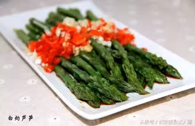 蘆筍用開水燙後要立刻泡在冷水裡,這樣蘆筍才脆嫩。