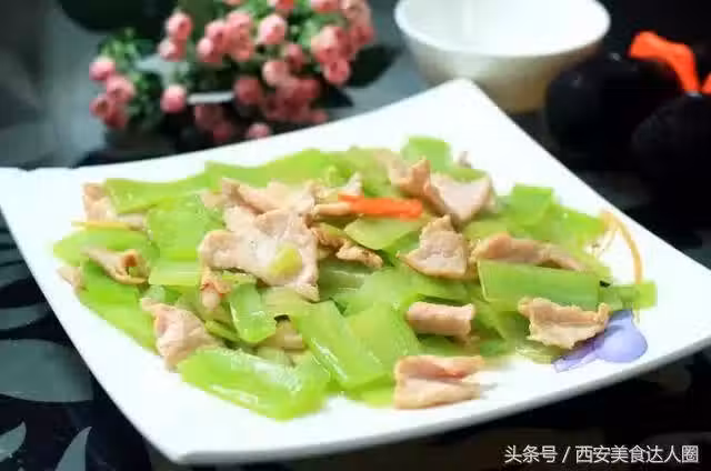 材料:萵筍100克、豬瘦肉100克,大木耳一大朵、胡蘿蔔1根,大蔥1根,大蒜4瓣、青紅椒各2個。紅油、老抽、生抽、醋、白糖、鹽、味精、花椒粉、薑粉、幹澱粉、植物油各適量。