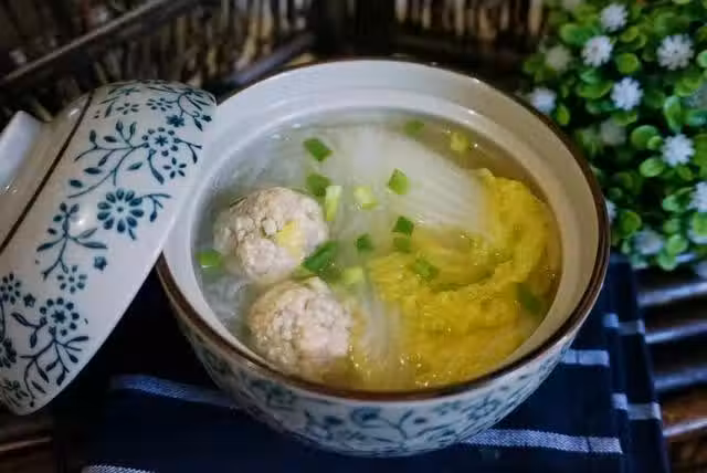 將拌好的肉餡揉成肉丸,下入鍋中煮至肉丸漂起。再煮四五分鐘關火即可。
