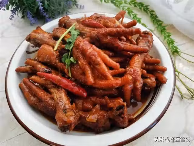 雞爪500克、油鹽適量、蔥1段、姜1塊、大蒜2瓣、花椒10幾粒、大料1個、干辣椒2-3個、料酒2湯匙、冰糖2湯匙、紅燒醬油半湯匙、生抽醬油1湯匙、