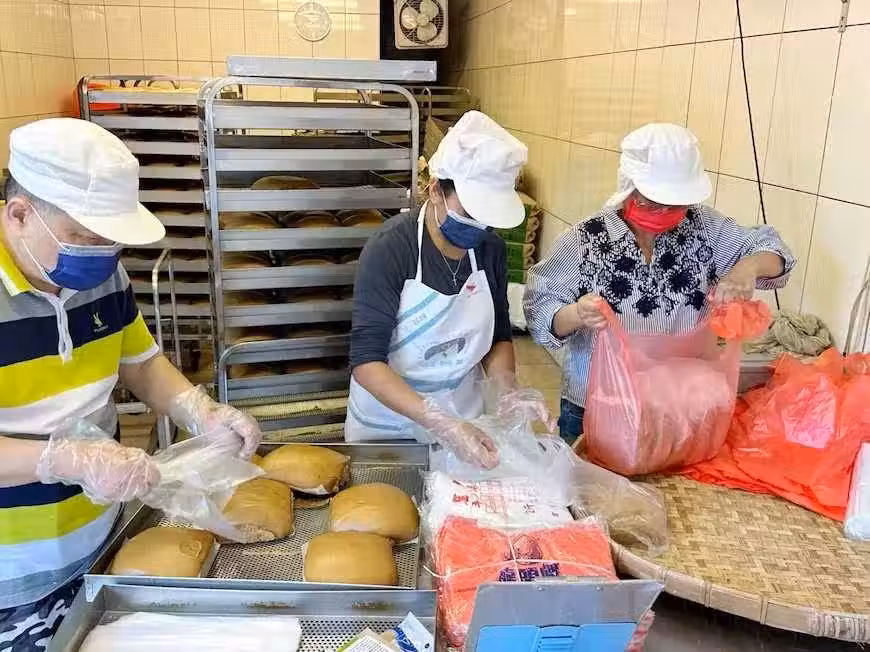 現場只見三位工作人員分工合作,速度相當快,包裝的動作簡直跟流水線一樣,才足以應付大家購買的速量~