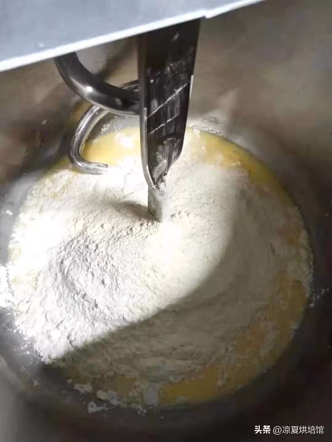 2面團打到8到9成筋度加入黃油,低速攪拌均勻,改高速攪拌至完全擴展狀態。