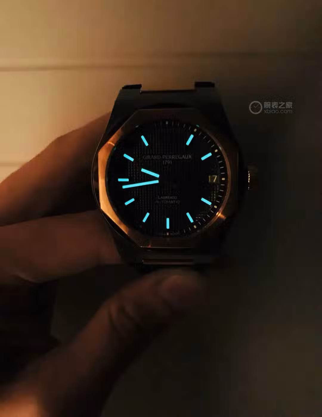 ▲刻度與時分針帶有冰藍色夜光顯示
