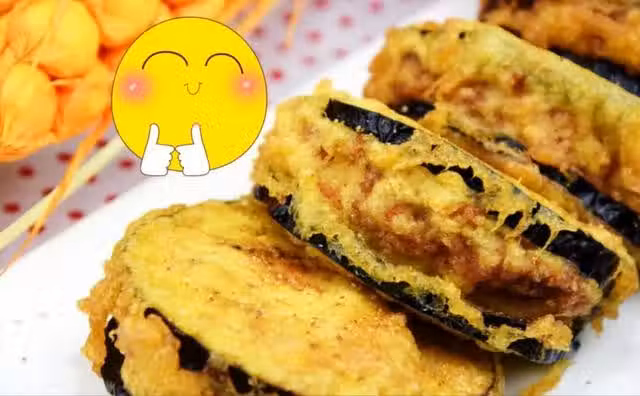 4,熱鍋加油,油溫六成熱,茄夾蘸勻麵糊開始炸制炸至金黃即可。