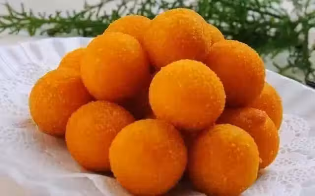 2、加油拌入玉米粉、糖之後搓成圓球。