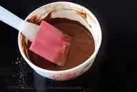 14.轉打蛋盆,加入微溫的可可溶液,攪拌均勻。