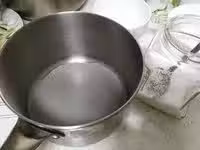 8.吉利丁用剪刀剪成小塊,放入小碗,加水沒過,放入鍋里隔水加熱,至融化成液態