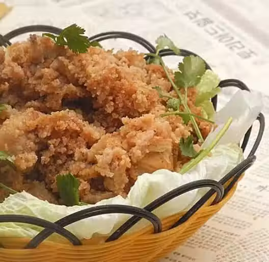 雞肉400克,糯米粉50克,江米酒25克,姜5克,大蔥15克,醬油15克,鹽4克,胡椒粉1克,味精1克。