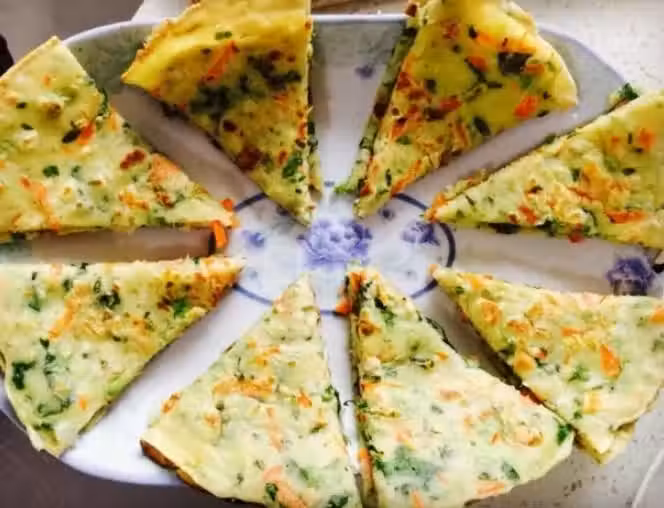 6. 起鍋,切塊,圓形、方形,三角形隨意。營養豐富又清爽的蔬菜餅就做好啦!