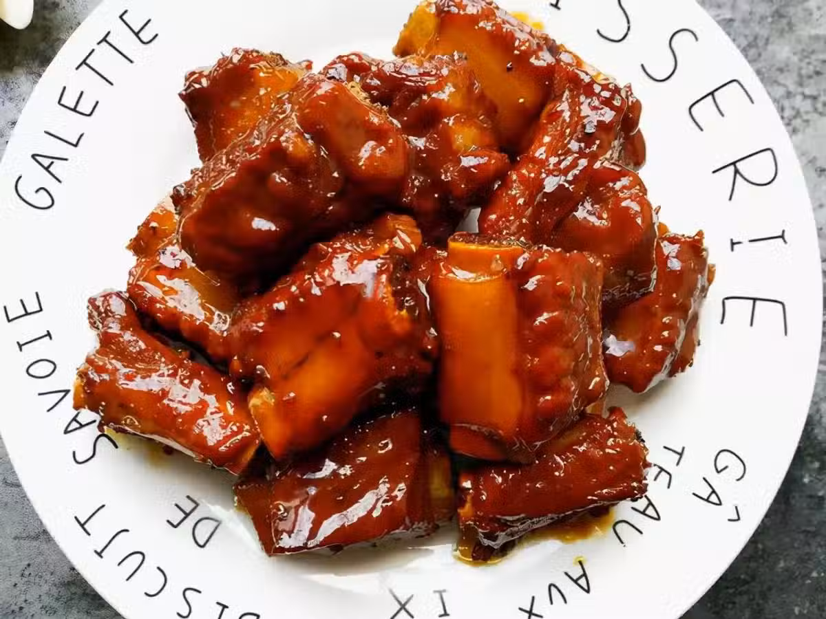 原料:水、排骨、花雕酒或料酒、生抽、香料、油、鹽、黃冰糖、紅燒醬油、蔥姜、白芝麻。