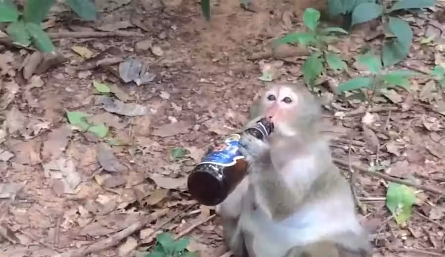 猴子一口氣「將整瓶酒喝光」,接下來請憋住別笑,「鏡頭記錄」爆笑一幕
